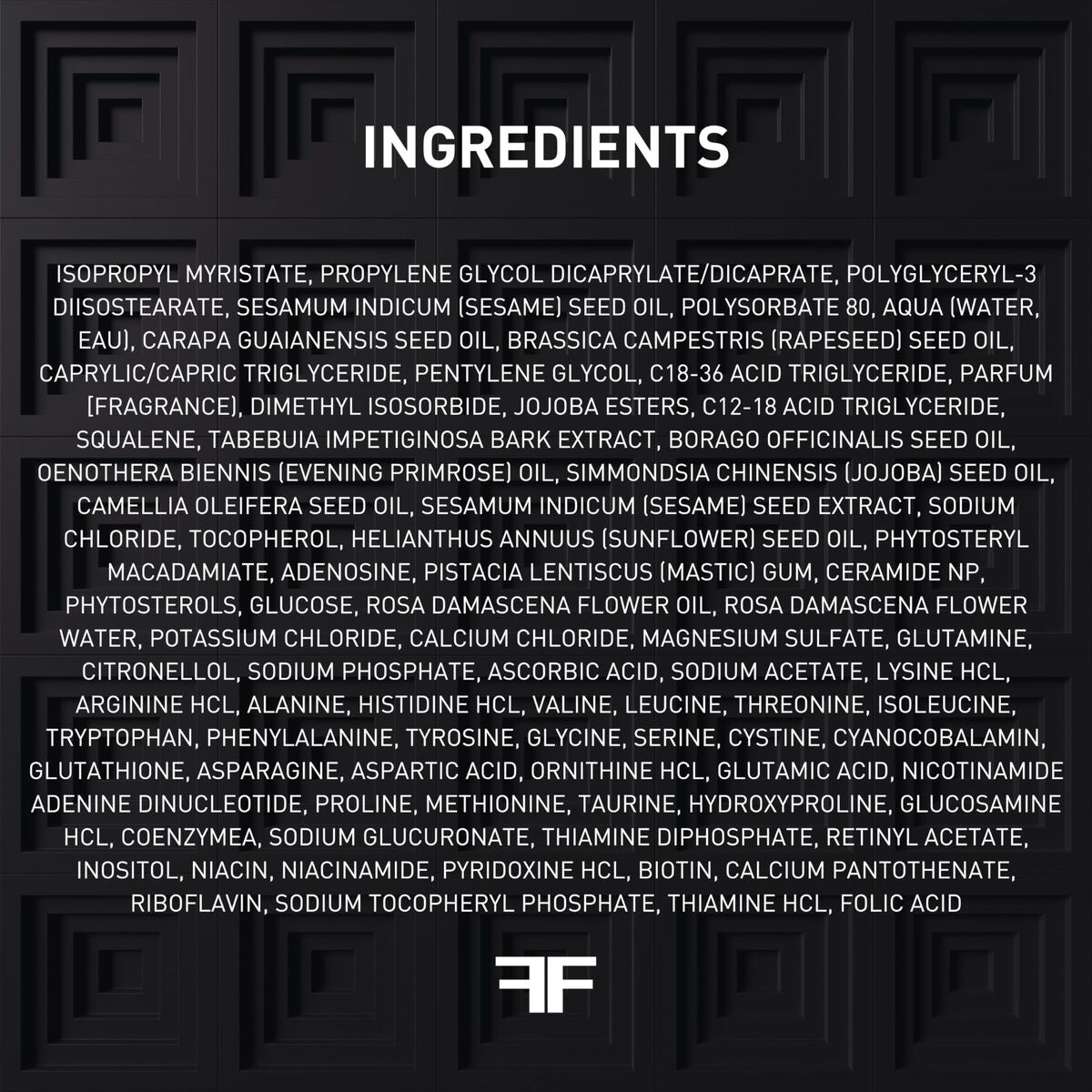 - A blend of botanical oils (rose damascena, camellia, evening primrose, sesame, jojoba, sunflower) and squalene for hydration and comfort.