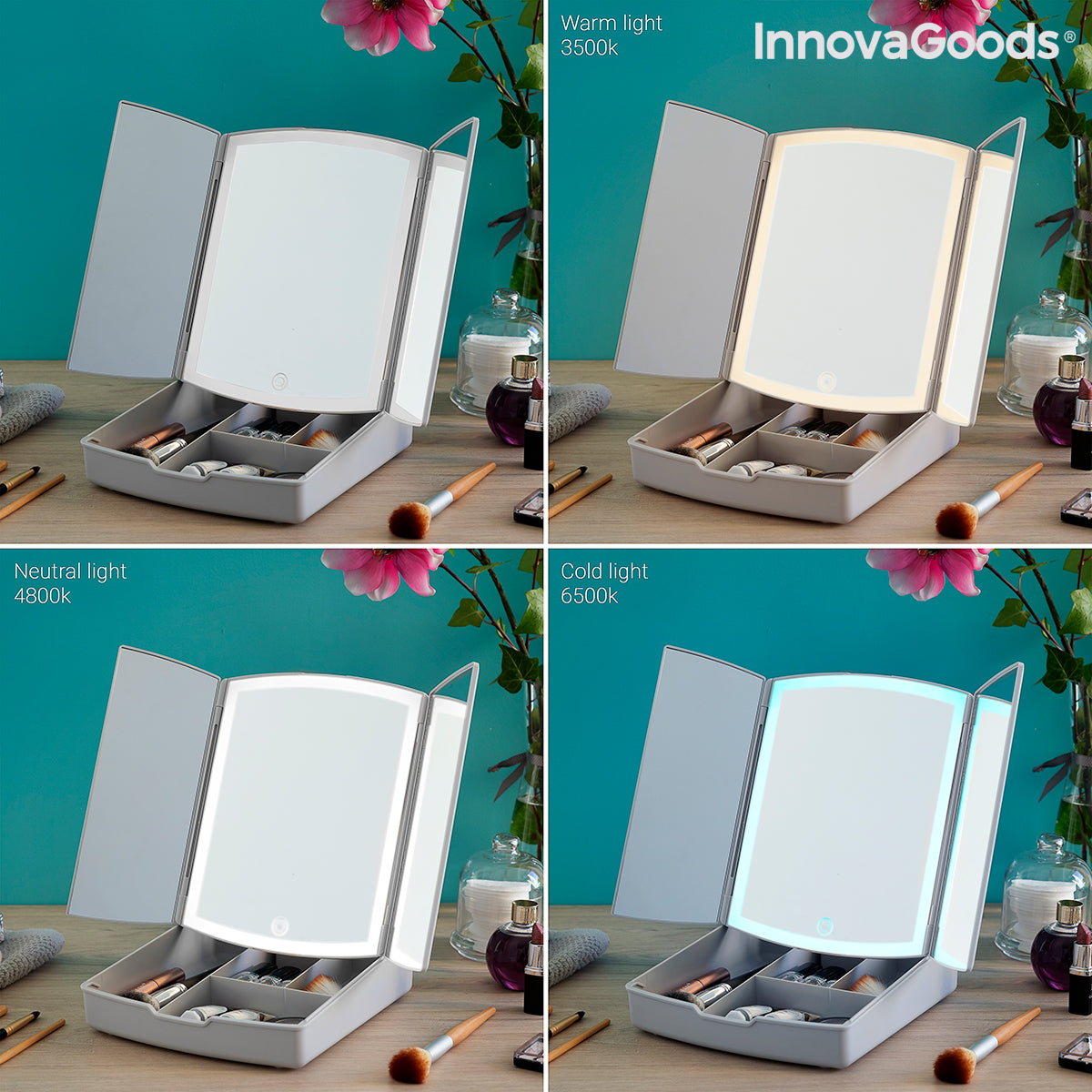 InnovaGoods facilite la priorisation de vos soins personnels sans aucune excuse, car il propose les meilleurs et les derniers articles de beauté, de détente et de bien-être ! Le miroir LED pliable 3 en 1 avec organisateur de maquillage Panomir en est un bon exemple ! Découvrez une large gamme de produits de haute qualité qui se distinguent par leur fonctionnalité, leur efficacité et leur design innovant.